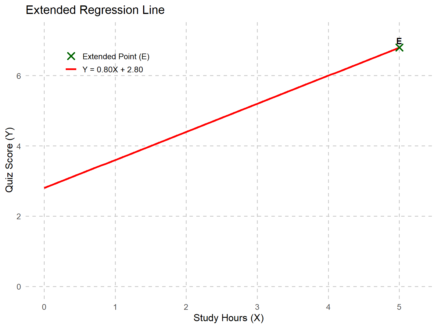 \[ \hat{Y}_I = 0.8(5) + 2.8 = 6.8 \]