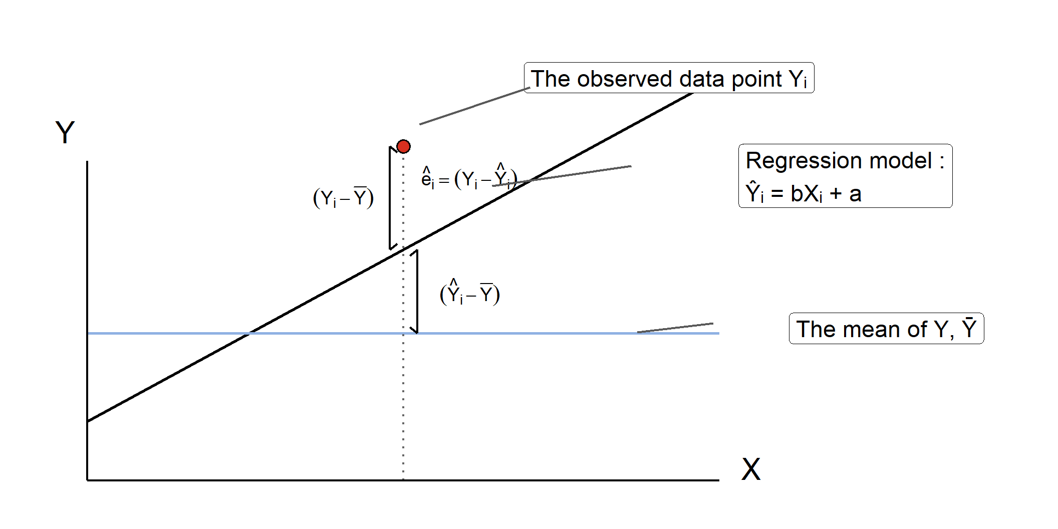 \(\bar{Y}\): The mean of Y values.