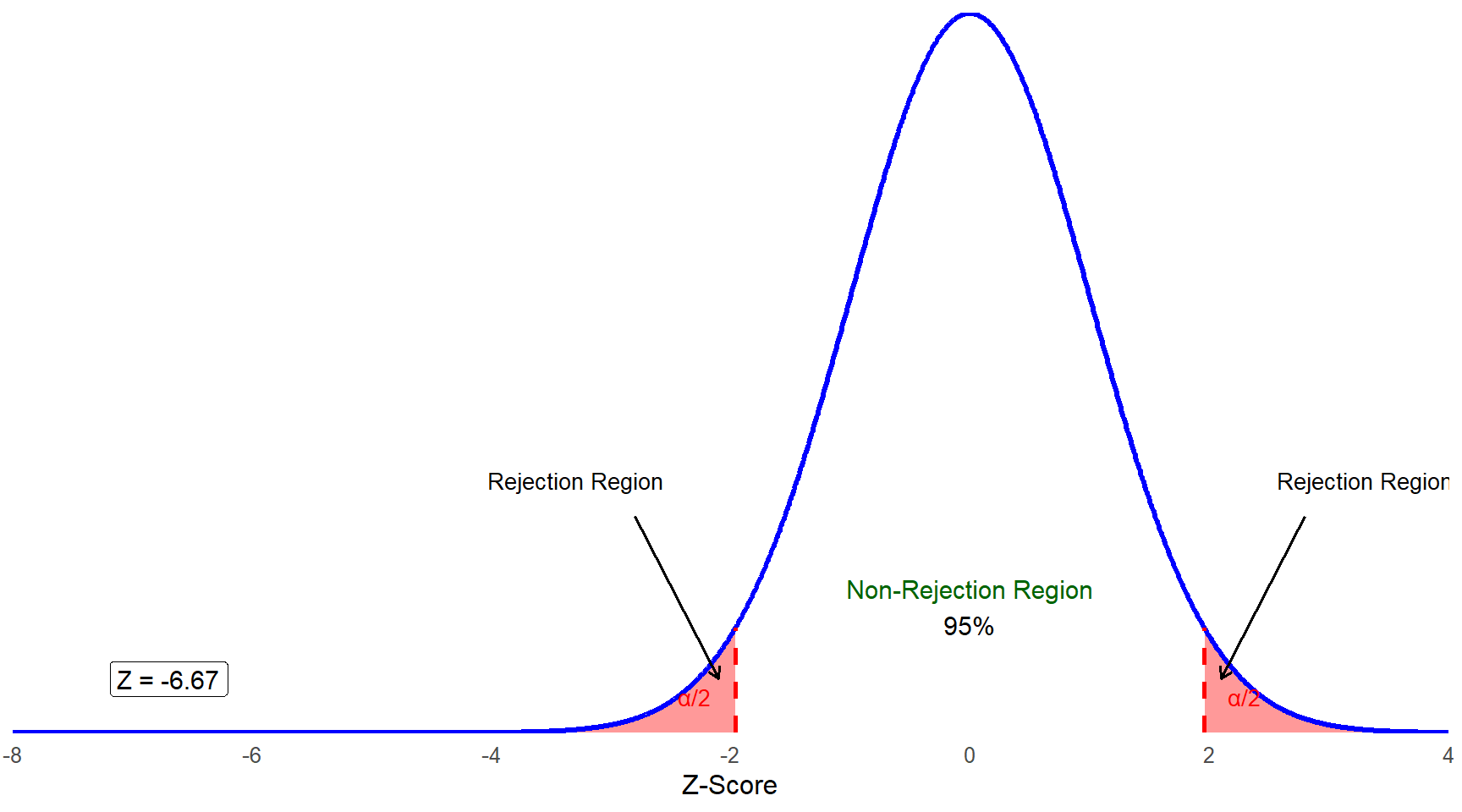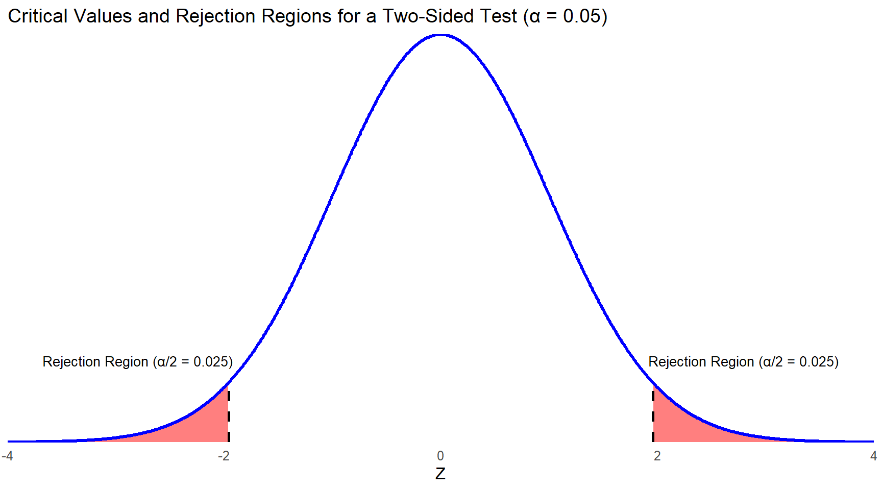 - Corresponding critical \(z\)-values: \(\pm1.96\).